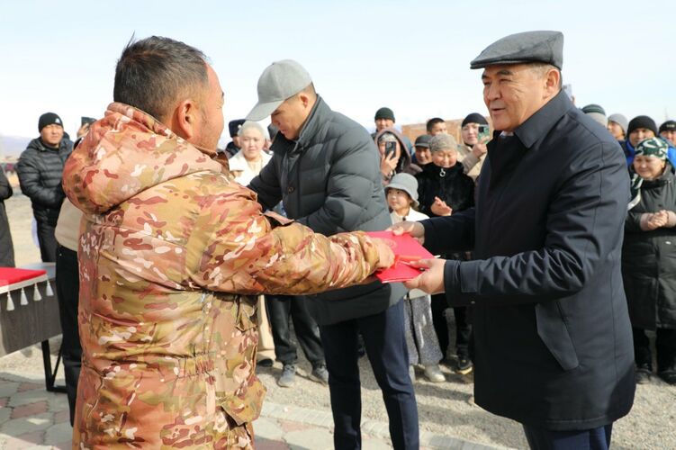 Chairman of the State Committee for National Security of Kyrgyzstan (SCNS) Kamchybek Tashiev handed over the keys and ownership documents for new houses to six families in the city of Balykchy during his working trip to Issyk-Kul region. The City Hall reported.