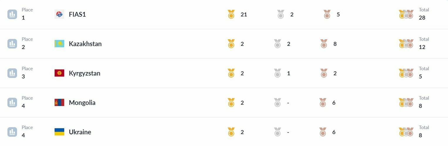 Kyrgyz athletes won two gold and two bronze medals, as well as one silver. Russian sambo wrestlers, competing in neutral status, took first place, while Kazakhstan took second place.