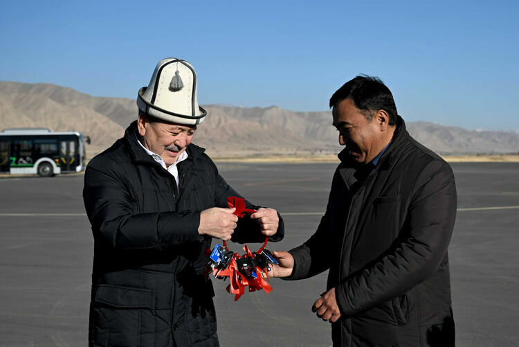 During a working visit to Naryn region, Chairman of the Cabinet of Ministers of Kyrgyzstan Adylbek Kasymaliev inspected specialized equipment purchased for municipal and city services, as well as new buses. The Cabinet’s press service reported.