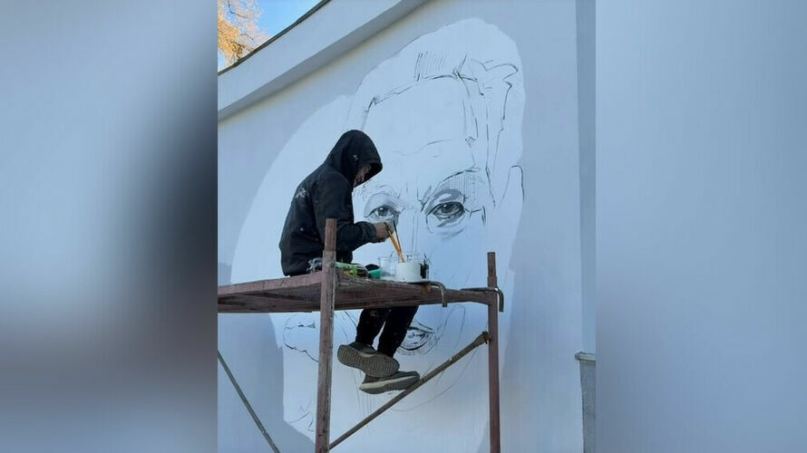 A mural depicting Kyrgyzstan’s renowned writer Chingiz Aitmatov is being created on the facade of the newly renovated National Russian Drama Theatre named after him. Eyewitnesses have already seen the artists at work, and the theatre administration has confirmed the information.