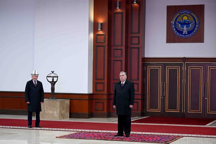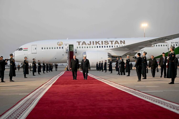 The Tajik leader was welcomed at Manas International Airport by Chairman of the Cabinet of Ministers Adylbek Kasymaliev.