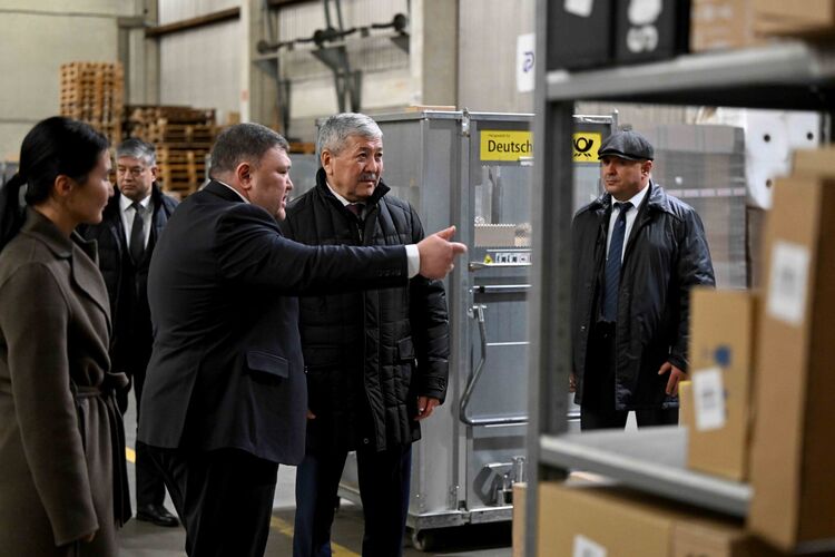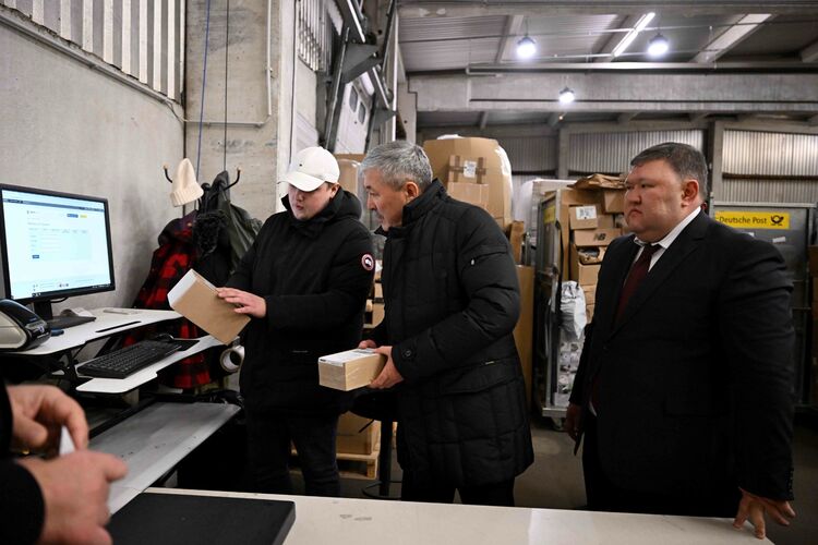 According to the press service, Adylbek Kasymaliev got acquainted with the center’s operations, including modern technologies for sorting, packaging, processing, and shipping international postal parcels.