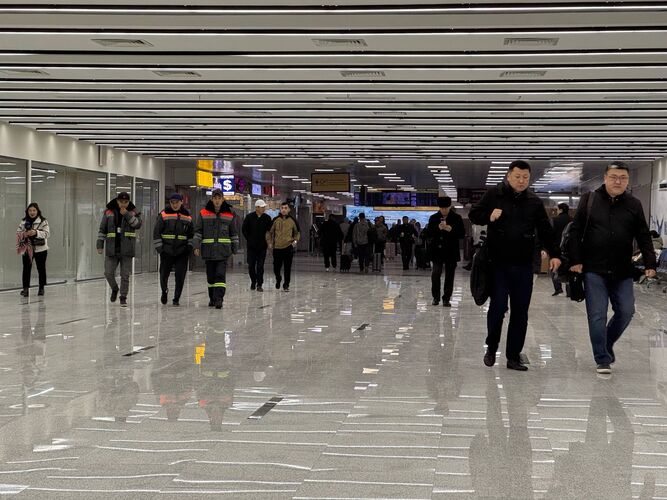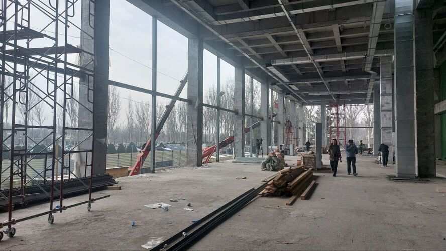 Modernization and expansion of the terminal building at Manas International Airport are ongoing. As of today, 70 percent of the concrete work has been completed. A new entrance on the western side of the building has been opened, while the eastern entrance is temporarily closed.