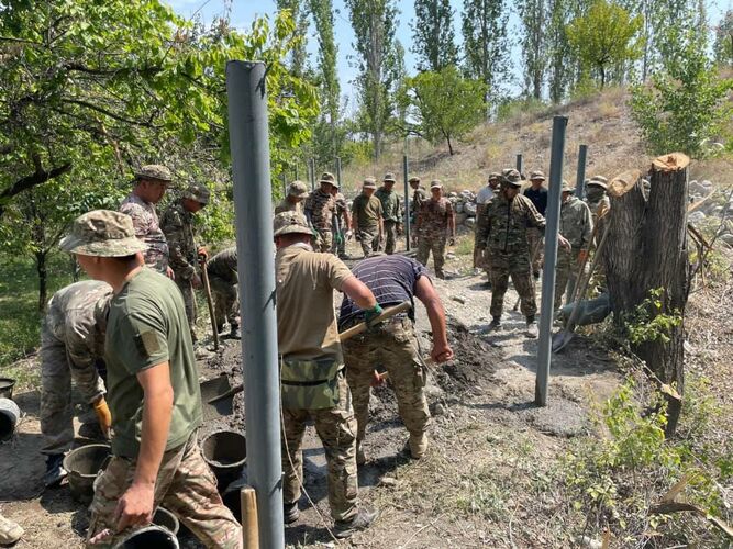 Chairman of the State Committee for National Security of Kyrgyzstan (SCNS) Kamchybek Tashiev visited military unit No. 2022 of the Border Service of the Kyrgyz Republic in Batken, where a ceremony was held to award servicemen who took part in installing fencing along the state border. The press service of the Ministry of Internal Affairs reported.