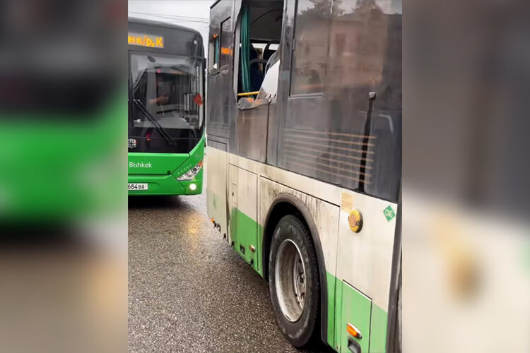 Two passenger buses collided in central part of Bishkek, eyewitnesses reported.