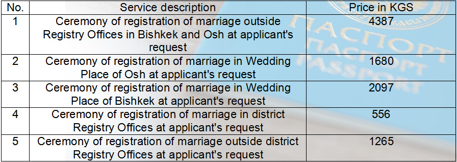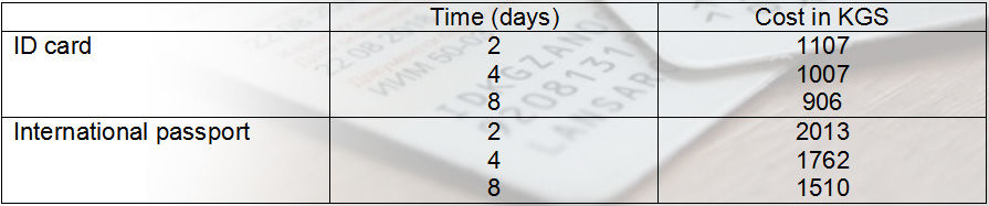 Prices for urgent issue of documents for citizens of Kyrgyzstan:
