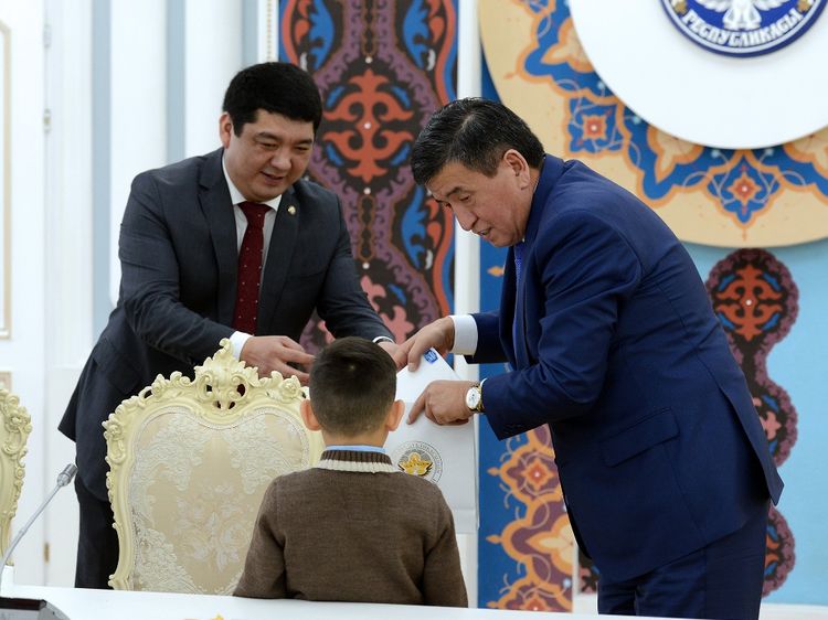 The President of Kyrgyzstan Sooronbai Jeenbekov met with children who lost their relatives and parents as a result of the crash of Boeing 747 cargo plane in Dacha SU on January 16, 2017. The Information Policy Department of the Presidential Administration reported.