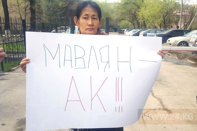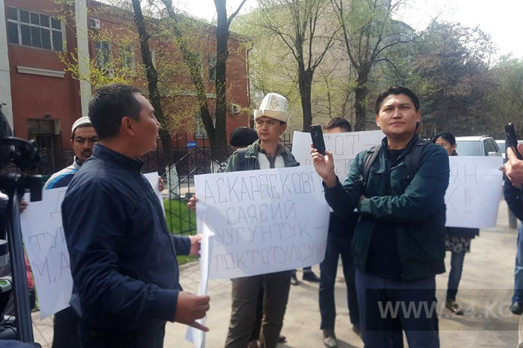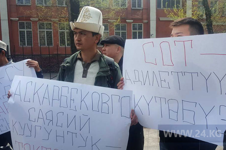 A rally in support of an activist Mavlyan Askarbekov is held in Bishkek near Pervomaisky District Court. The protesters demand to acquit him and stop political persecution.