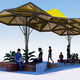 The author presented a dynamic surface (covering), under which there are two spaces for rest in the form of geometric benches. There is a place for performances in the center.