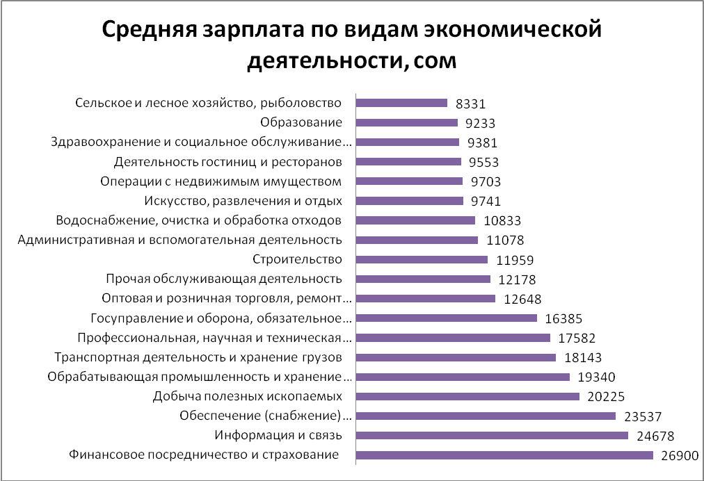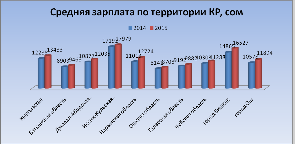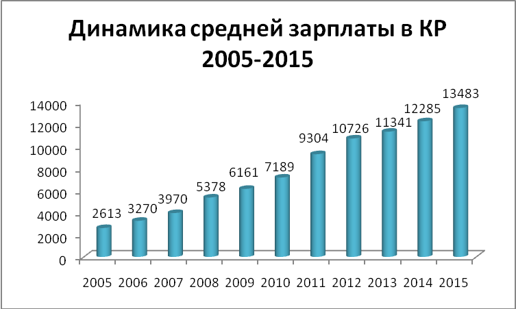 1. За минувшие десять лет средняя зарплата в стране выросла в 5,1 раза. Если в 2005 году она составляла всего 2 тысячи 613 сомов, то в 2015-м выросла до 13 тысяч 483 сомов. При этом самые большие скачки в заработках наблюдались в 2008 и 2011 годах.