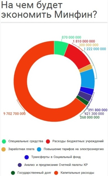 Министерство финансов представило данные по оптимизации расходов бюджета на 2016 год. Всего расходы сократили на 14,9 миллиарда сомов.
