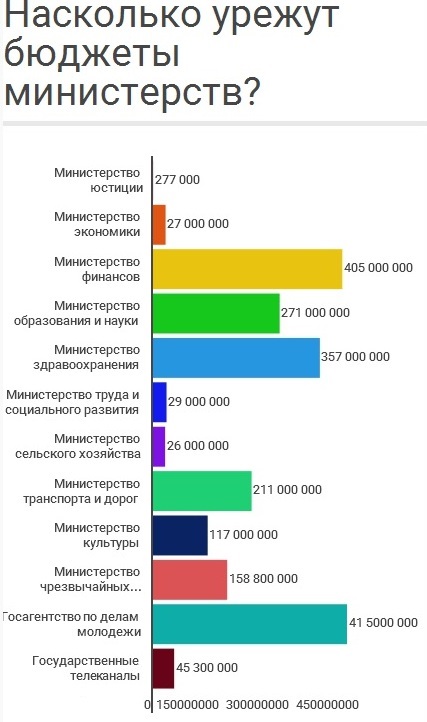 Подвергнутся секвестру и бюджеты министерств и ведомств. Больше всего урежут расходы Минфина (включая госинвестиции), Минздрава, Минэкономики и Минобразования.