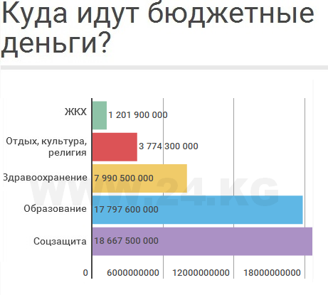 С начала года траты бюджета сложились в 94 миллиарда 70 миллионов сомов. Это на 12,1 миллиарда больше показателя 2015 года. В том числе по защищенным статьям расходов выделено 60 миллиардов 401,2 миллиона сомов, по незащищенным - 7 миллиардов 592 миллиона.