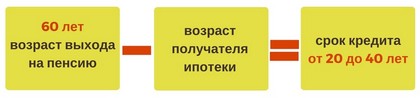 60 лет (возраст, когда человек выходит на пенсию) минус возраст человека, берущего ипотечный кредит (например, ему 25 лет) = 35 лет (получится срок погашения ипотечного кредита), ипотечный кредит предоставляется под 1 или 2 процента годовых.