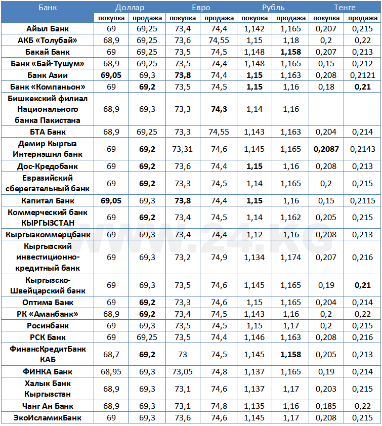 Курсы валют в коммерческих банках Кыргызстана на 31 января 2017 года