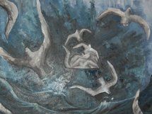 - Я искала подходящий сюжет для полотна о феномене манасчи. Мне всегда было интересно, что с ними происходит в момент чтения эпоса. В рассказах людей, занимающихся сказительством, поразила мысль об их соединении с природой в этот момент. Родилась идея, и я решила изобразить фигуру человека, состоящую из облаков, символизирующих воздух и воду.
