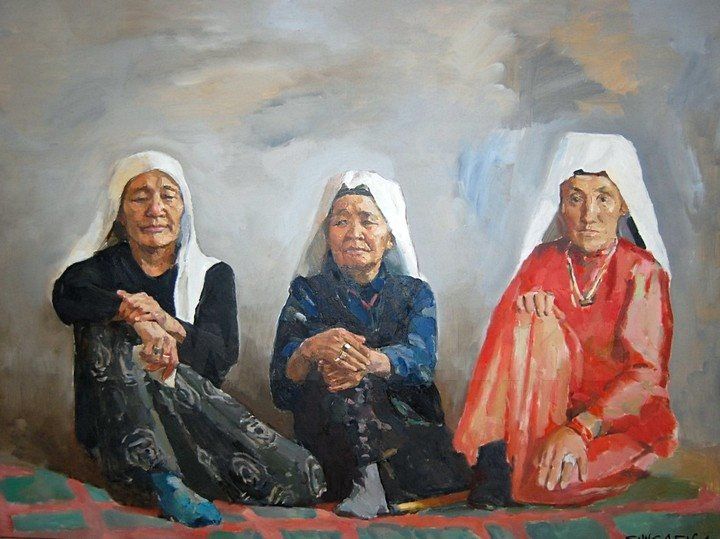 Выставку Юристанбека Шыгаева «Память предков» можно поделить на несколько подразделов. Первый – реалистические портреты: «Айша апа», «Рожденная в 1916», «Старая женщина из провинции Ван», «Семья табунщика», «Подруги», «Зейнеп апа с внуком», «Ожидание», «Жаргылчак». Все это - лики сыновей и дочерей, внуков и правнуков свидетелей черной полосы истории кыргызского народа. Здесь художник стремится к персонификации трагедии, словно говорит зрителю, что за всем этим в истории стоит не нечто абстрактное и аморфное, а личность, которая несет на себе отпечаток времени.
