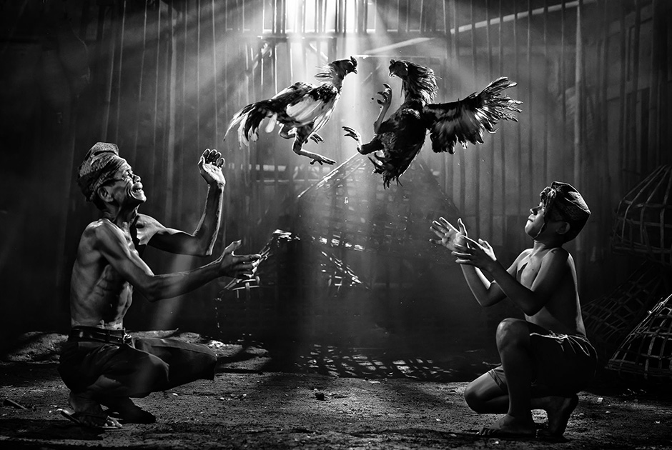 Традиционные петушиные бои в Индонезии. Pimpin Nagawan