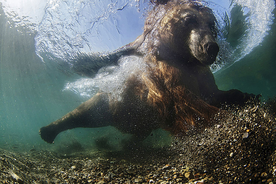 Медведь во время рыбалки. Mike Korostelev