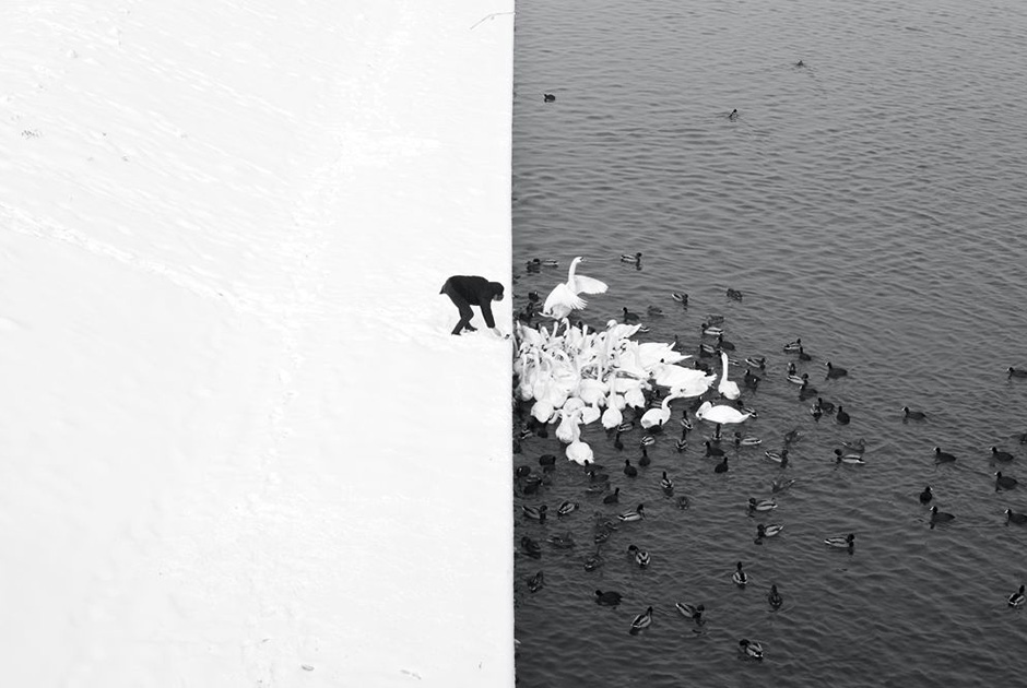 Мужчина кормит птиц в Кракове. Marcin Ryczek