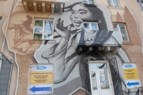 В Бишкеке завершилась работа над новым произведением стрит-арта. В самом сердце столицы, на фасаде одного из старых советских домов возникло изображение молодой кыргызской девушки на фоне стройных елей, белых облаков и скачущих лошадей. Даже неискушенному в искусстве стрит-арта зрителю понятно: авторам пришлось изрядно потрудиться, чтобы выполнить рисунок на фасаде, где расположена череда окон, балконов, входная дверь. Но дизайнер Николай Черкасов и художники творческой группы «DOXA» Дмитрий Петровский и Сергей Келлер с заданием справились успешно. Сейчас прохожие нет-нет да удивленно вскинут брови и улыбнутся, разглядывая чернобровую девушку. ИА «24-kg.com» стало интересно узнать, как воплощалась в жизнь эта уличная картина, и мы обратились с вопросами к Николаю Черкасову.