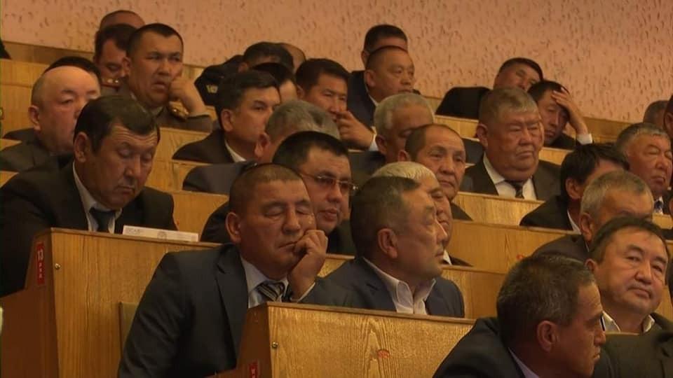 Ош шаарында «Санарип Кыргызстан: региондорду өнүктүрүү» биринчи телекоммуникациялык форумунда бир катар аткаминерлер уктап олтурган сүрөтү таркатылууда.