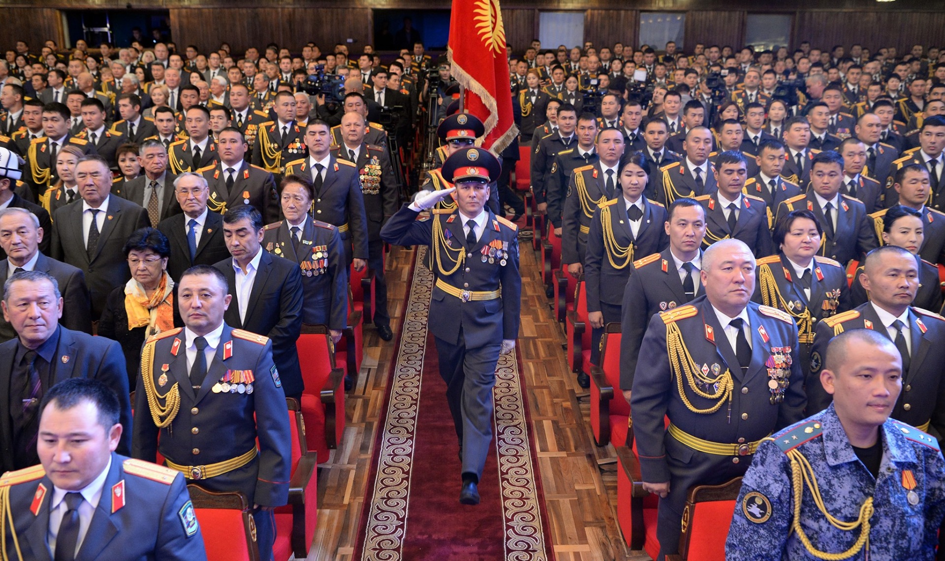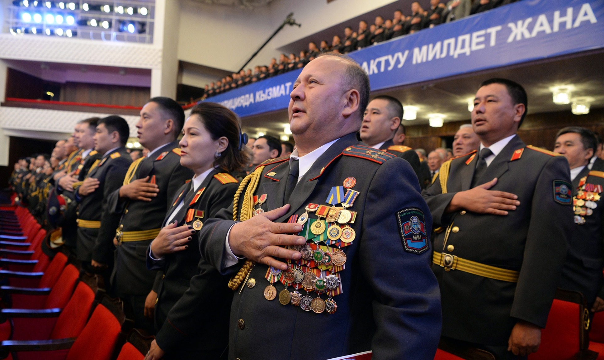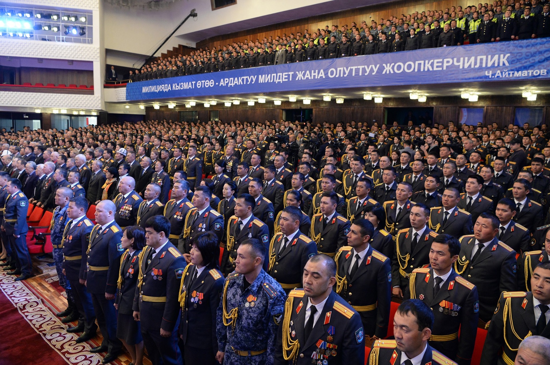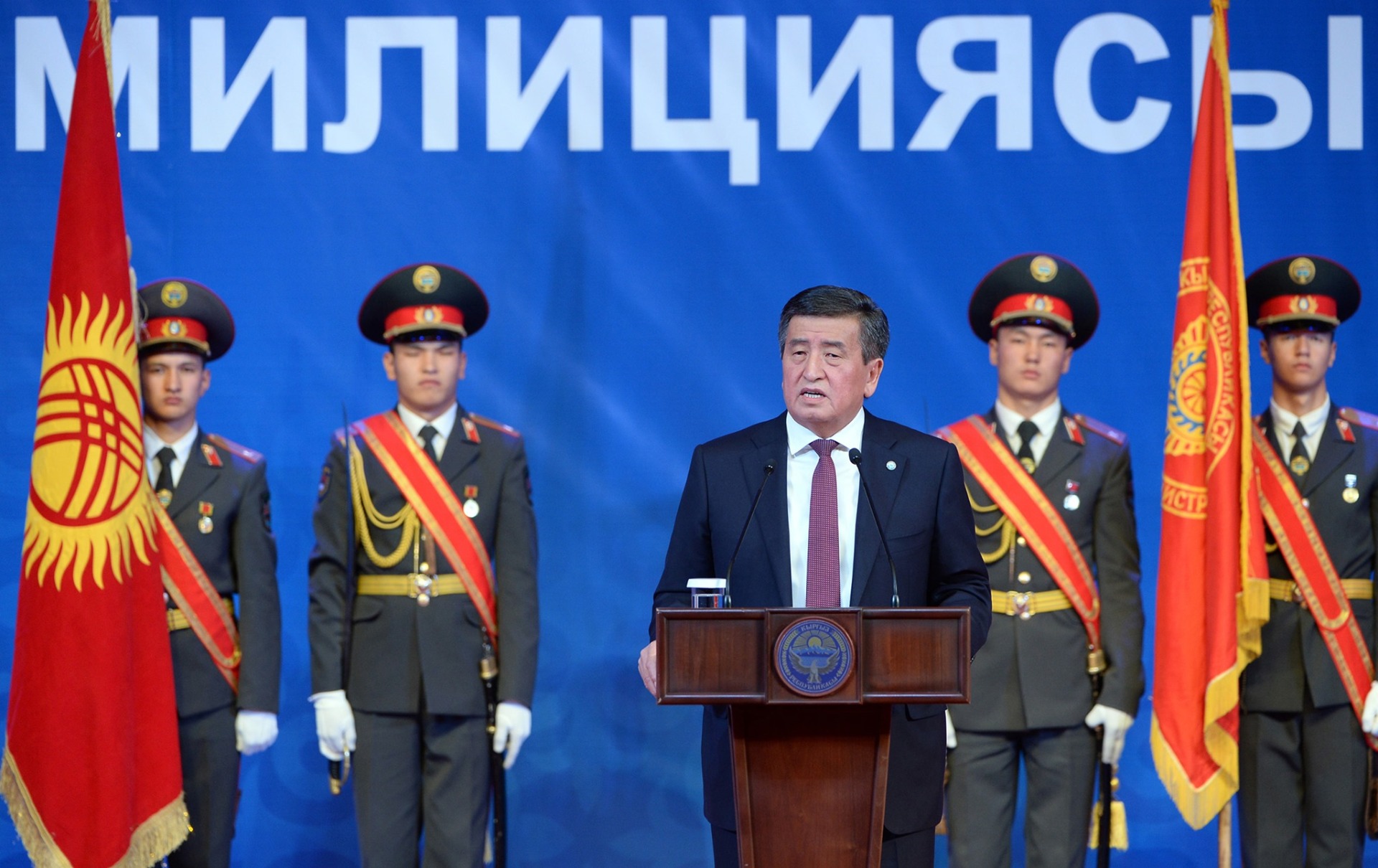 Т.Сатылганов атындагы Кыргыз улуттук филармониясында президенттин катышуусунда салтанаттуу иш-чара уюштурулду. Өз сөзүндө Мамлекет башчысы ата мекендик ички иштер органдарынын түзүлүү тарыхына токтолуп, жарандарыбыздын мамлекетке, бийликке болгон ишеними катардагы милиционерден башталарын белгиледи.