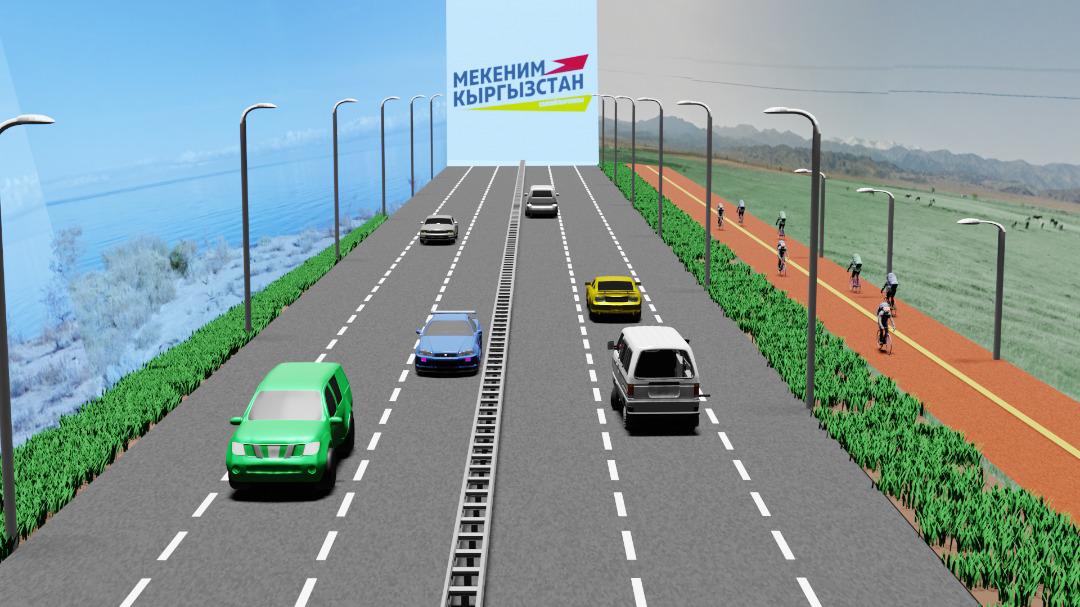Анын ичинде Ысык-Көл областынын Балыкчы-Бөкөнбай-Каракол шаарына чейинки аралыкка 224 чарчы метрди түзгөн 6 тилкелүү жол куруу планы сунушталат. Бөлүүчү тосмо жана туристтерди кызыктыра турган веложолдун болушу абдан маанилүү.