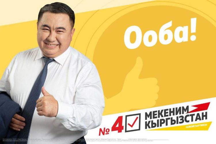 Буюртма каржы маселелери боюнча ыйгарым укуктуу өкүлү Джайчиева Гулбарчин Эр Турсуновна тарабынан «Мекеним Кыргызстан» партиясынын атайын шайлоо фондунун эсебинен каржыланды. Юридикалык дареги: Кыргыз Республикасы, Бишкек шаары, Турусбеков көчөсү, 109/1, 510-кабинет.