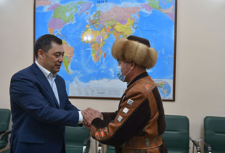 Садыр Жапаров 14 саат манас айткан Дөөлөт Сыдыков менен жолукту. Бул тууралуу президенттин басма сөз кызматы билдирет.