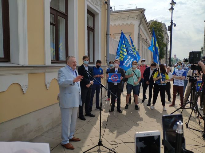 Орусиянын Мамлекеттик Думасынын депутаты, ЛДПР партиясынын лидери Владимир Жириновский Кыргызстандын Орусиядагы элчилигинин астында бир канча тарапташы менен нааразылык акциясын өткөрдү. Бул тууралуу анын Телеграм-каналында кабарланды.