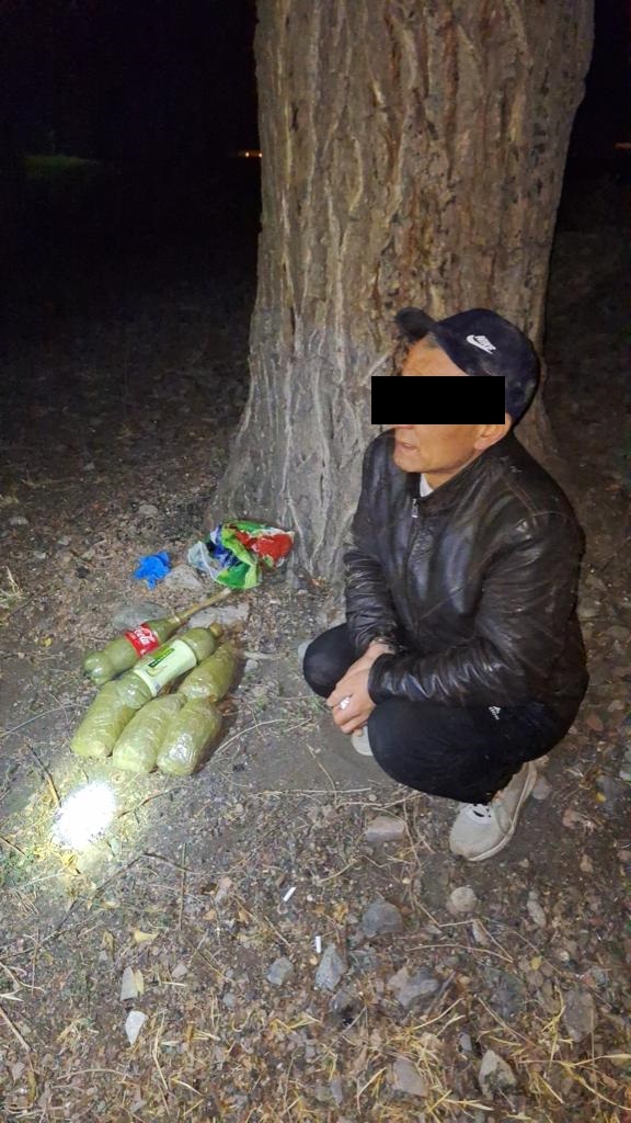 Маалыматка ылайык, жеке текшерүү учурунда шектүү жарандан скотч менен оролгон беш брикет табылган, алардын ичинде кара куурайдын өзгөчө жыты бар кочкул жашыл зат болгон.