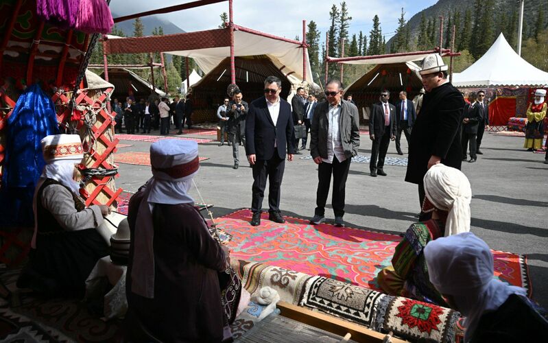 Кол өнөрчүлөр аллеясын бойлото басып, Садыр Жапаров менен Анвар Ибрагим көчмөн элдин өзгөчөлүгү чагылдырылган боз үйлөрдүн инсталляциялары, кыргыз элинин улуттук каада-салттары жана маданияты, кол өнөрчүлөрдүн устаканаларда уникалдуу буюм-тайым жасап жаткандары менен таанышты, ошондой эле жогорку даражалуу коноктор жергиликтүү тамак-аштардан даам татышты.