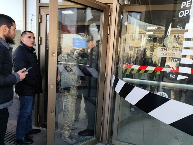«Альфа» атайын күчтөрүнүн жоокерлери имаратта турушат. Сатуучулардан каттоодон өтпөгөн уюлдук телефондор алынып жатат. ЦУМдун биринчи кабатында жана жер төлөсүндө тинтүү иштери жүрүп жатат.