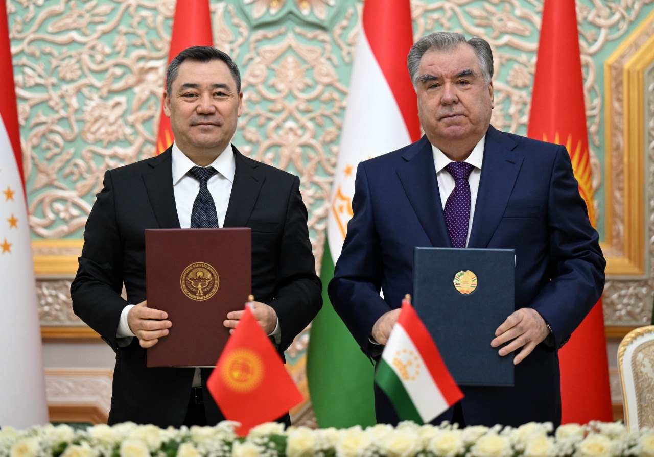 Бүгүн, 31-мартта Президент Садыр Жапаров менен Тажикстандын президенти Эмомали Рахмон Худжанд шаарында Ратификациялык грамоталар менен алмашуу жөнүндө протоколго кол коюшту. Мамлекет башчылары бул келишим эки өлкөнүн ортосундагы ар тараптуу өз ара аракеттенүүнүн бекем пайдубалы болуп, келечек муундарга саясий жетилгендиктин, боордоштуктун жана тарыхый жоопкерчиликтин үлгүсү болооруна ишенимин билдиришти.