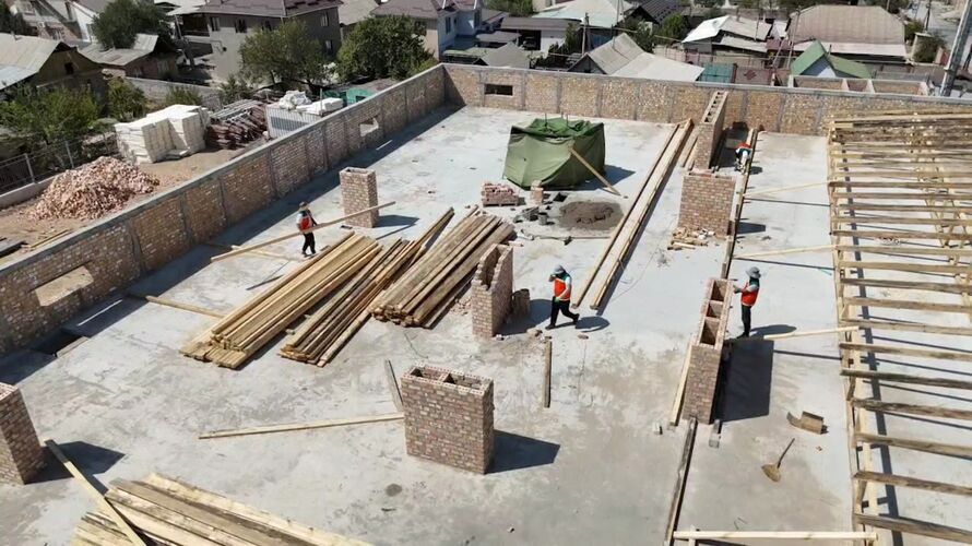 Учурда темир-бетон каркас курулуш иштери толук бүткөрүлүп, чатырын монтаждоо жана кирпич дубалдарын тургузуу иштери жүрүп жатат.