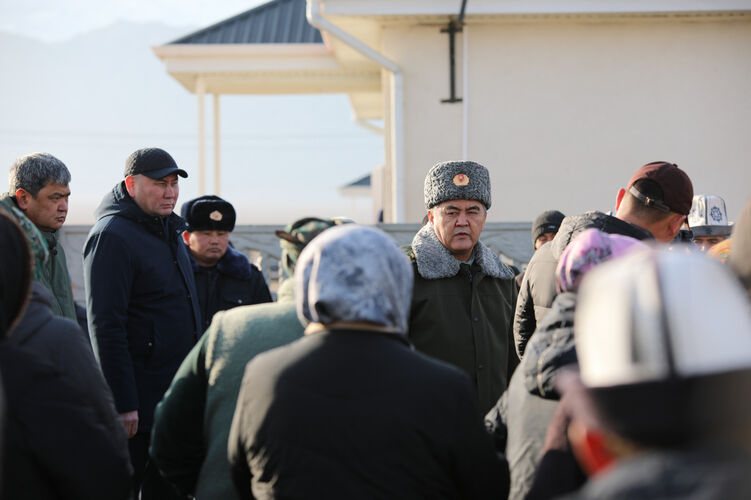 Иш сапарынын жүрүшүндө коопсуздук кызматынын башчысы мамлекеттин колдоосу менен курулуп, жарандарга берилген жаңы турак жайлардын сапатын текшерип, курулуш иштерин карап чыкты.