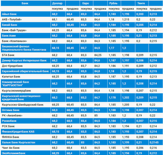 Валюталардын коммерциялык банктардагы наркы