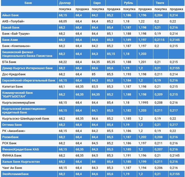 Валюталардын коммерциялык банктардагы наркы.