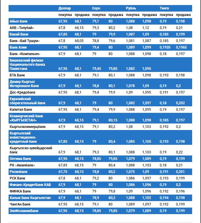 Валюталардын коммерциялык банктардагы наркы.
