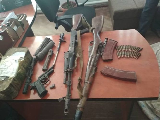 Маалыматка караганда, тартип сакчылары АК-74 үлгүсүндөгү тапанча жана 2 магазин, карабин, 29 ок таап алышты.