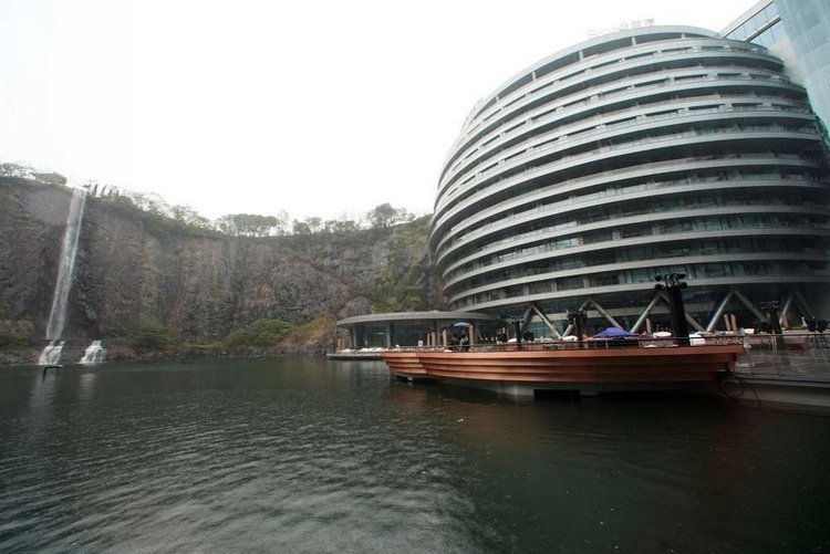 Это первый в мире отель, построенный в карьере, на 88 метров ниже уровня земли. Комплекс встроен в одну стену карьера, а напротив него водопад.