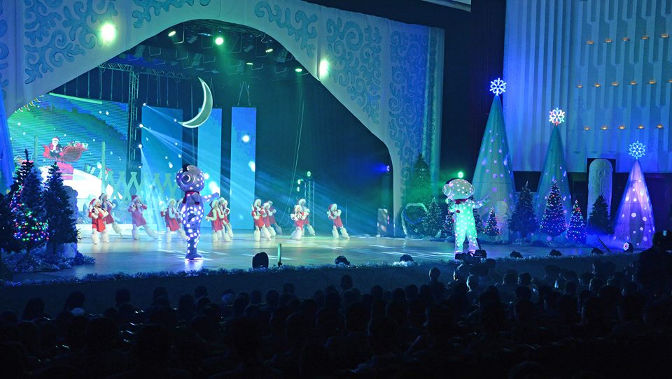 В Национальной филармонии прошла президентская елка. В ней участвовали дети из малоимущих семей, детских домов, отличники учебы, победители и участники олимпиад и разных конкурсов.