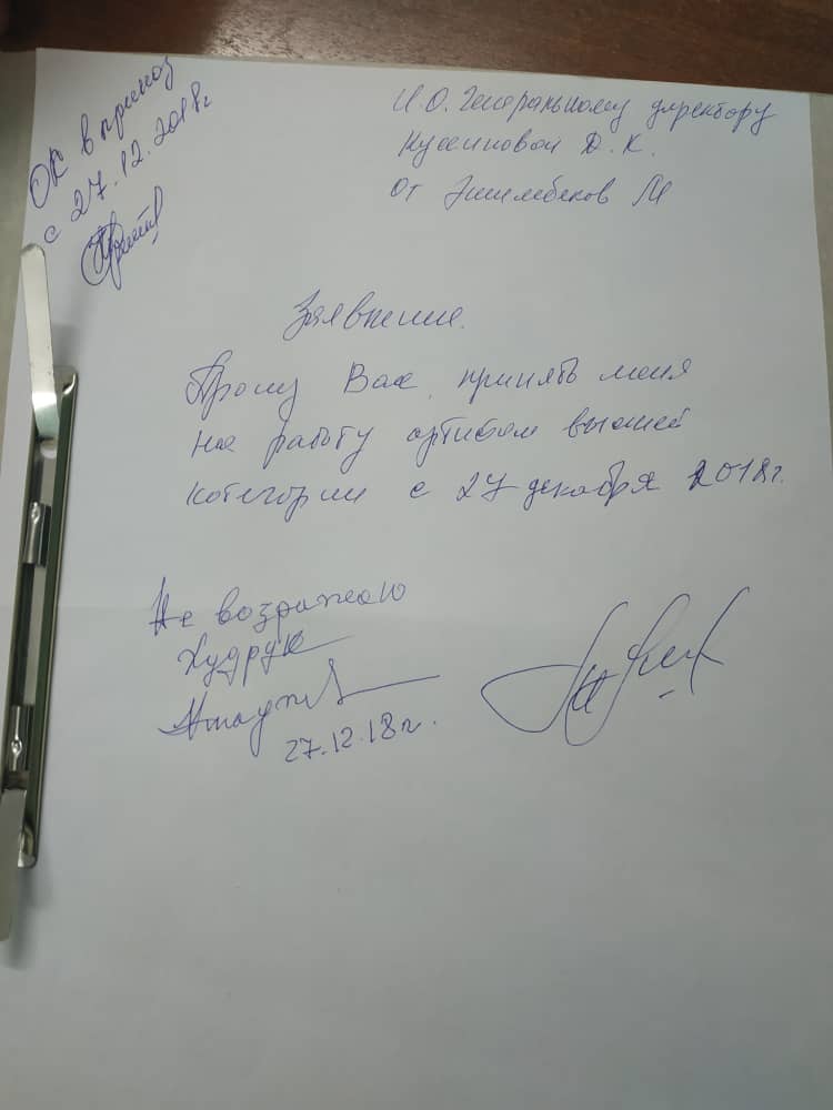 «У нас сейчас нет главного электрика, а Мамбетов — профессионал своего дела, к тому же он ушел, потому что закончился контракт. То есть ничего не мешает ему вернуться на работу. А вот что касается Маната Эшимбекова, да, у него были личные неприязненные отношения с Курмангазы Исанаевым, но он народный артист. За него просили ветераны. Завтра выйдет на работу наш юрист, и мы еще раз рассмотрим вопрос, можно ли восстановить Маната Эшимбекова. Решение по нему пока не принято», — сказала она.
