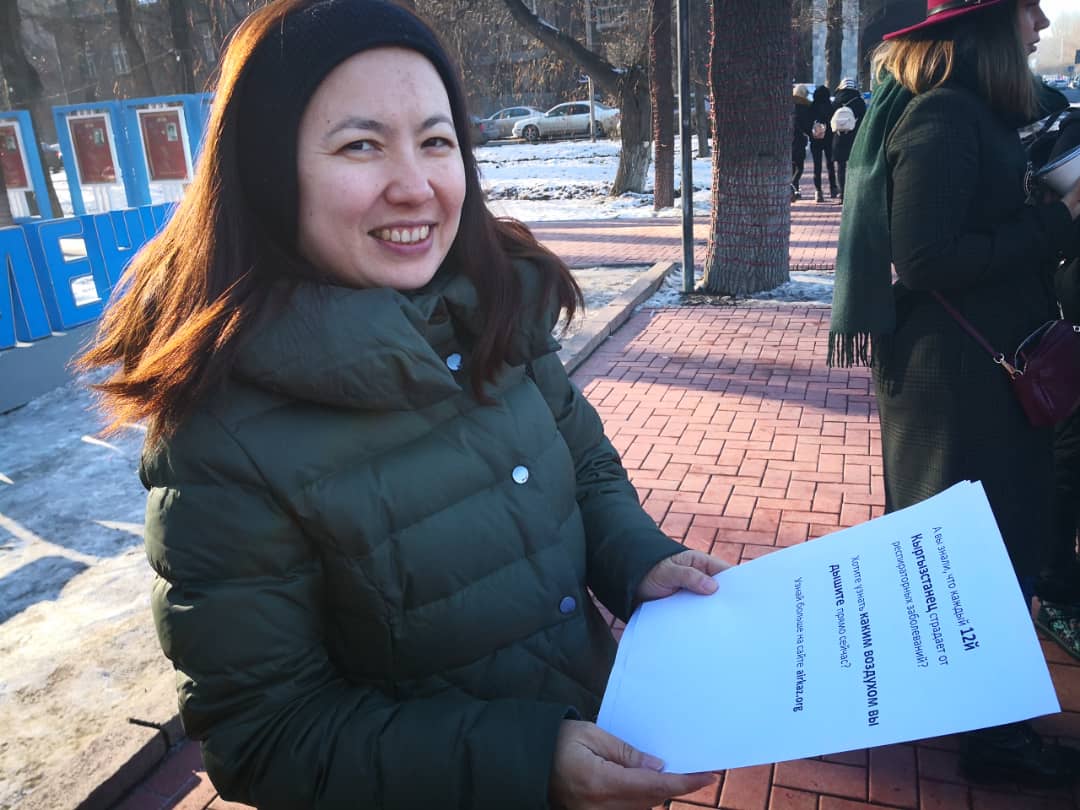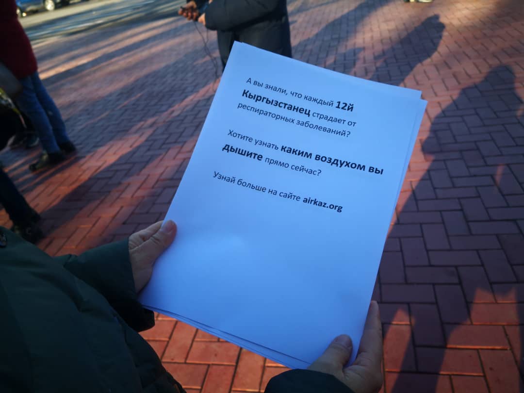 Экоактивисты в центре Бишкека провели акцию, посвященную загрязнению воздуха в столице. Они раздали горожанам специальные маски и рассказали о качестве воздуха и его влиянии на здоровье.