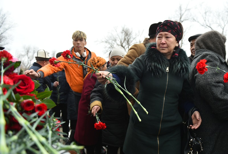 В мероприятии участвовали руководитель аппарата президента Кыргызстана Досалы Эсеналиев, близкие погибших и представители общественности.