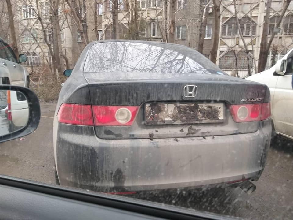 В Кыргызстане водители замазывают госномера автомашин грязью. Фотографии разместили в социальной сети Facebook.