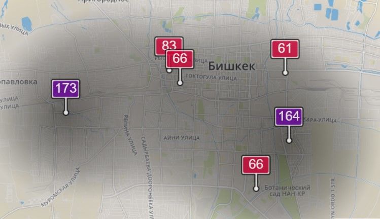 Общественное объединение MoveGreen и активист из Алматы Павел Александров собрали для Бишкека датчики и привязали их к карте.