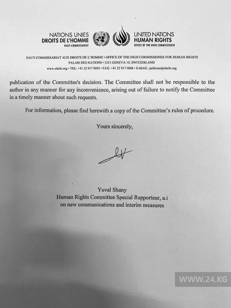 Как пояснила 24-kg.com глава клиники Чолпон Джакупова, обращению присвоен регистрационный номер. То есть эксперты комитета приняли обращение юристов к рассмотрению.