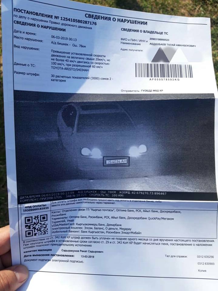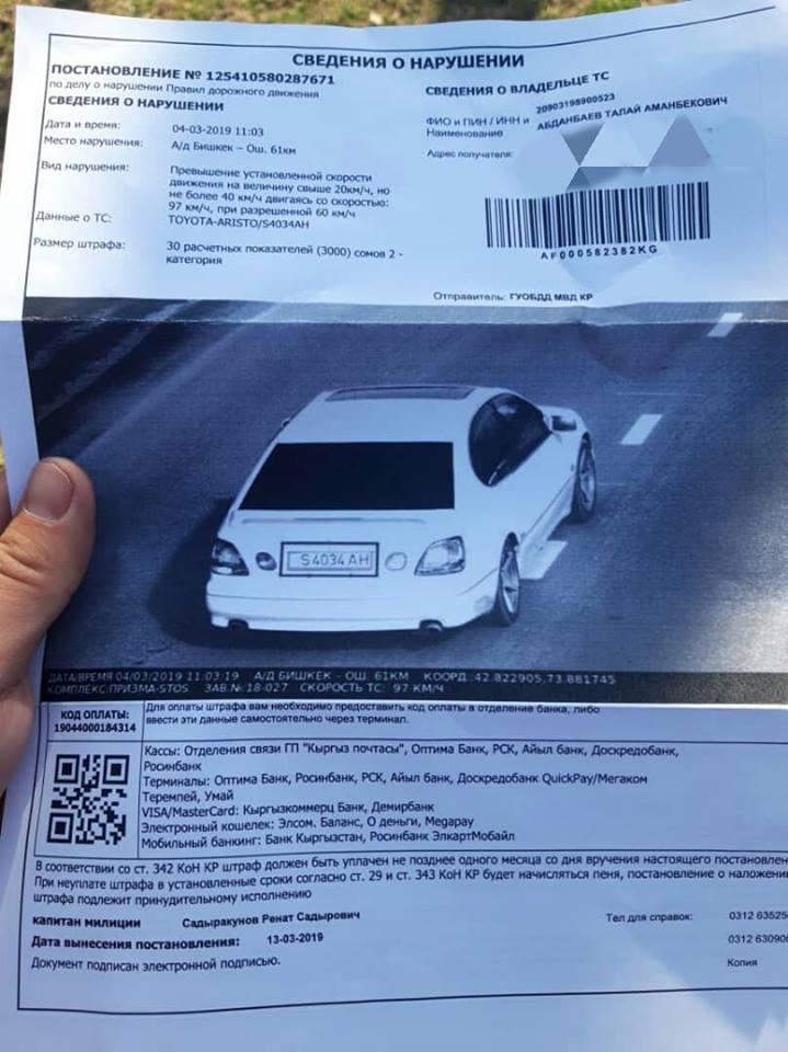 Он получил два постановления о нарушении по 3 тысячи сомов каждое, при том что автомобиль давно не оформлен на него.